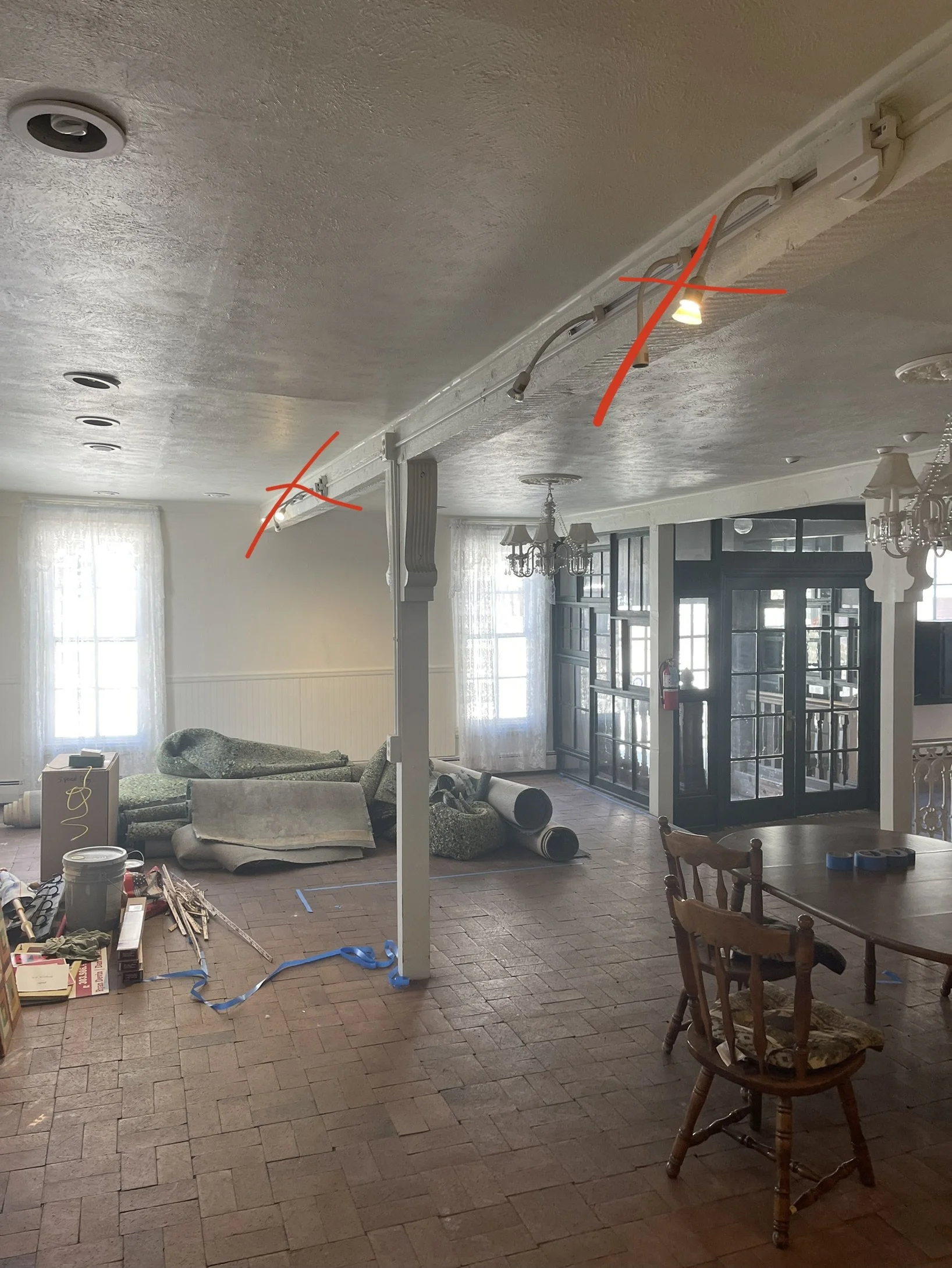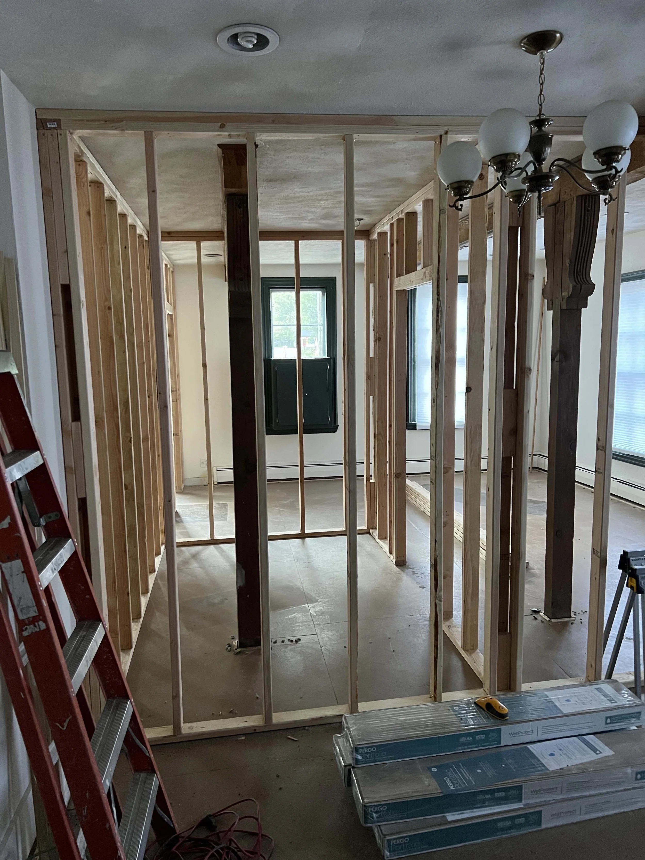 We tore up years old disgusting carpet and started framing the three new suites we added on the main level.